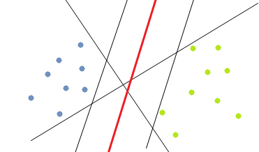 분리 초평면(Separating Hyperlane)이라고 합니다. 여기서 해결해야 할 문제는 최적의 분리 초평면을 찾는 거에요!